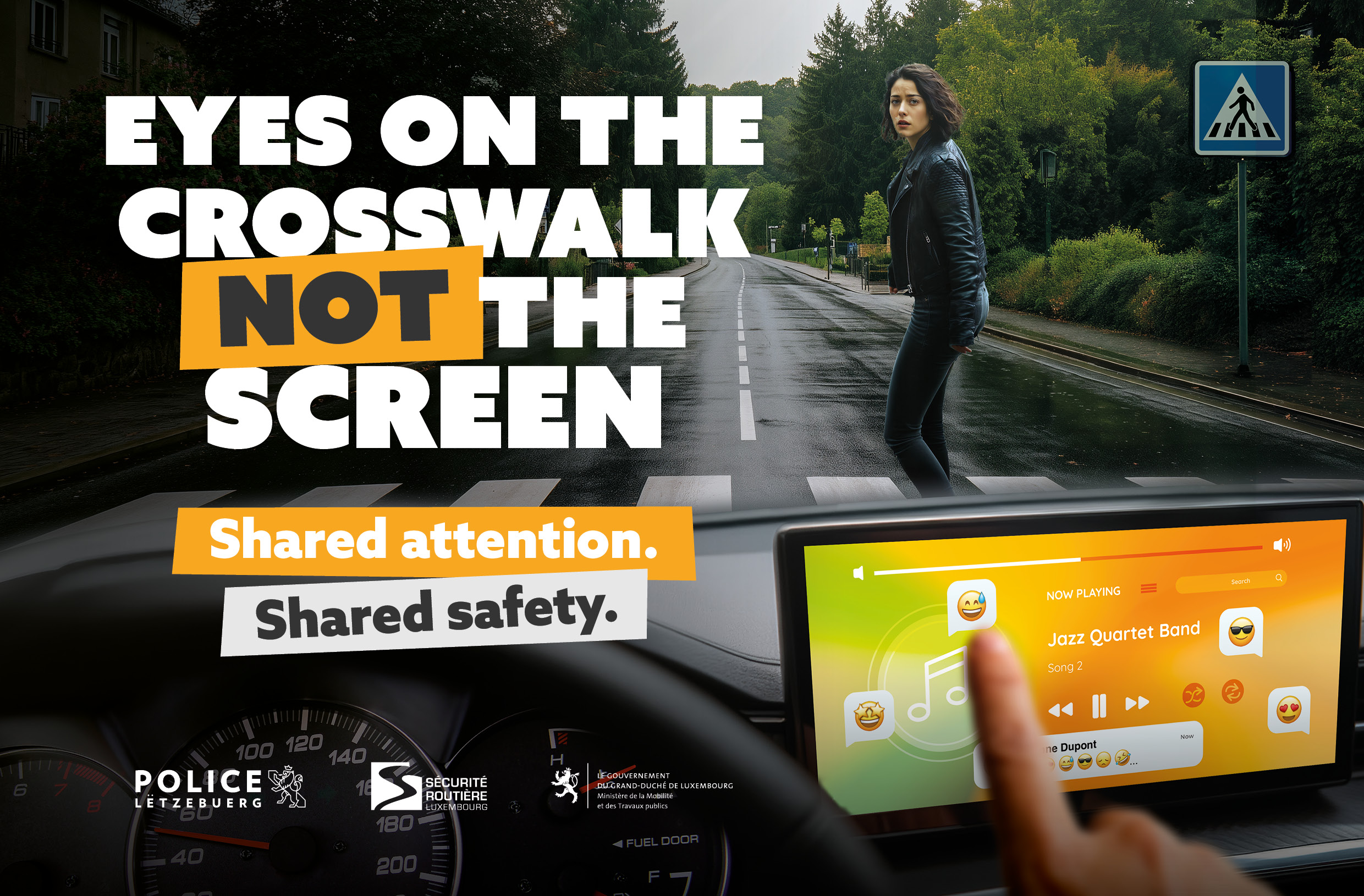 Launched in three languages (English, French, and Luxembourgish), the campaign highlights three behaviors that have become commonplace, even banal, but which are in fact dangerous and significantly increase the risk of an accident:
